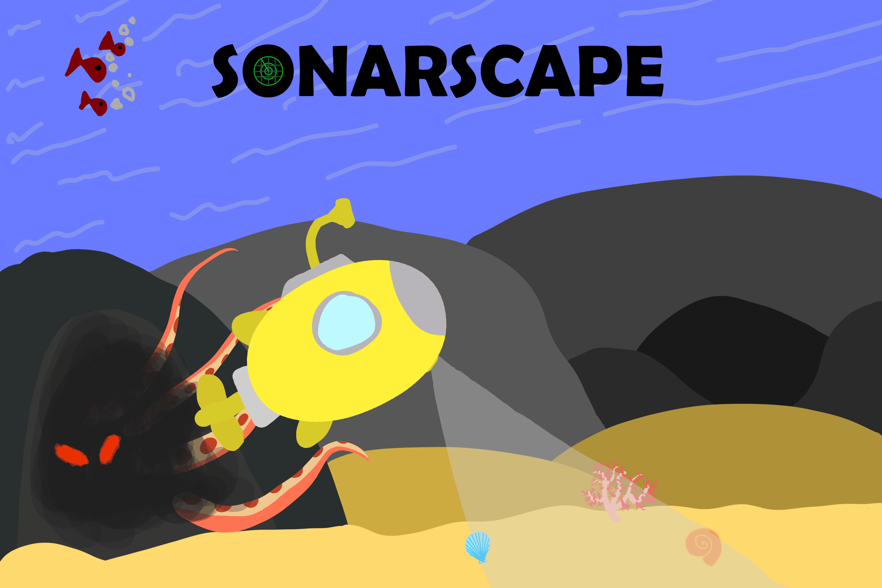Welcome to Sonarscape! In this adventure, you explore the deepest, darkest, depths of the ocean, and race to escape from a mysterious creature deep within a cave system! In the murky darkness, your vision is unreliable. You must use your sonar scanner in order to find your way to the exit! But beware, many dangers lurk just out of sight- from explosive mines to a giant kraken, you must be careful to prevent your submarine from being sunk...will you make it back to the surface? Only one way to find out!